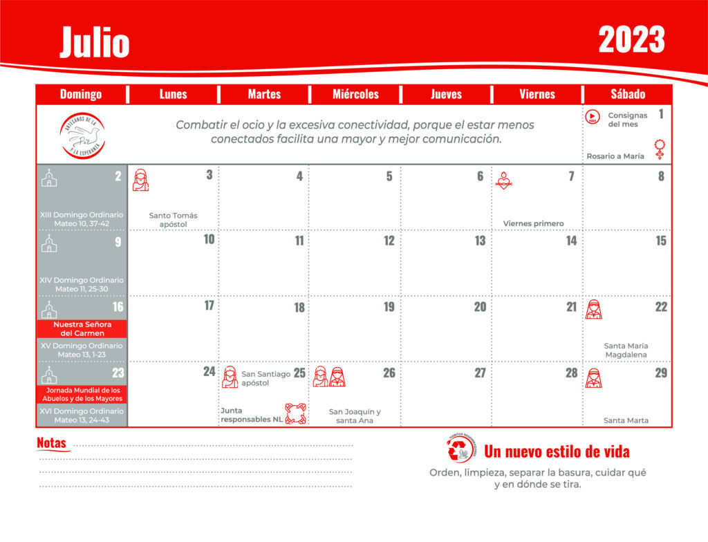 Con esta temática, además de las celebraciones importantes del mes, se produjeron y distribuyeron vía chat y en nuestras redes 23 subsidios formativos con el objetivo de proponer medios para hacer vida lo que se propone en la agenda.